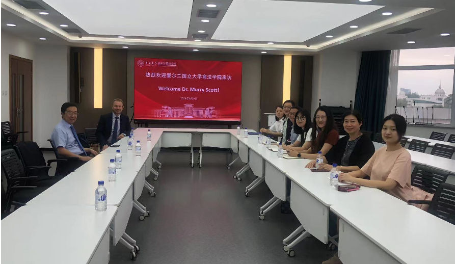 2024年9月9日,爱尔兰国立大学(高威)商法学部副学部长Murry Scott教授来访9428cn太阳集团古天乐。公司副经理隋建利、副经理郭英彤在东荣大厦611会议室与Murry Scott教授亲切会面。