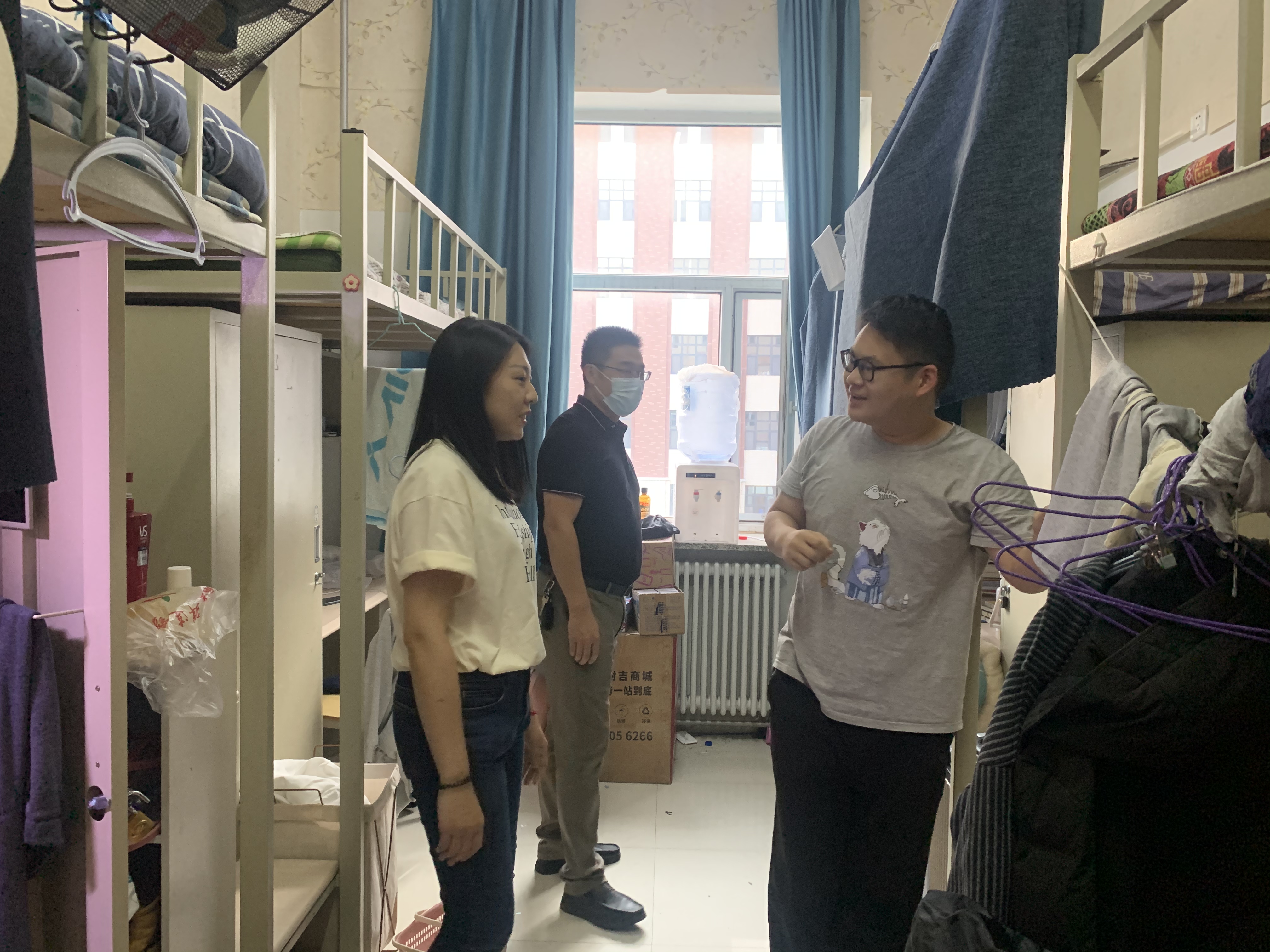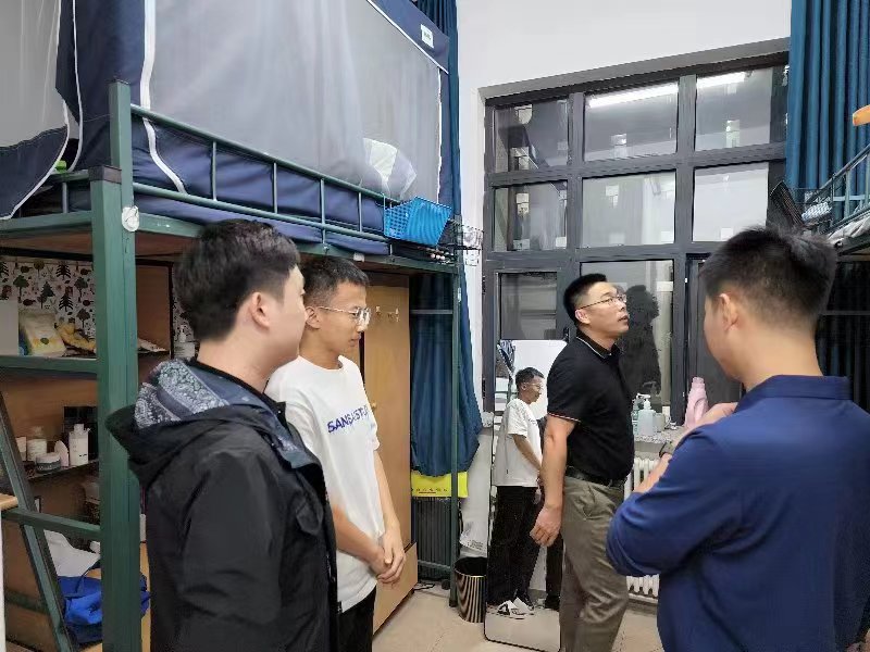 为贯彻落实《关于开展9428cn太阳集团古天乐本(预)科员工公寓卫生安全检查专项行动的通知》工作要求,排查宿舍安全隐患,进一步提高员工的生活质量,督促员工养成良好的生活习惯,创建安全、整洁、文明的学习和生活环境,2022年9月29日-9月30日,商学与管理公司党委副书记兼副经理李帅,2021级辅导员丁越,2020级辅导员刘天目、禚传阳,2019级辅导员陈卓、刘翔宇及2022级辅导员李毓、贾奇达深入员工寝室,开展公寓安全检查专项行动,扎实完善安全细节,确保校园安全。