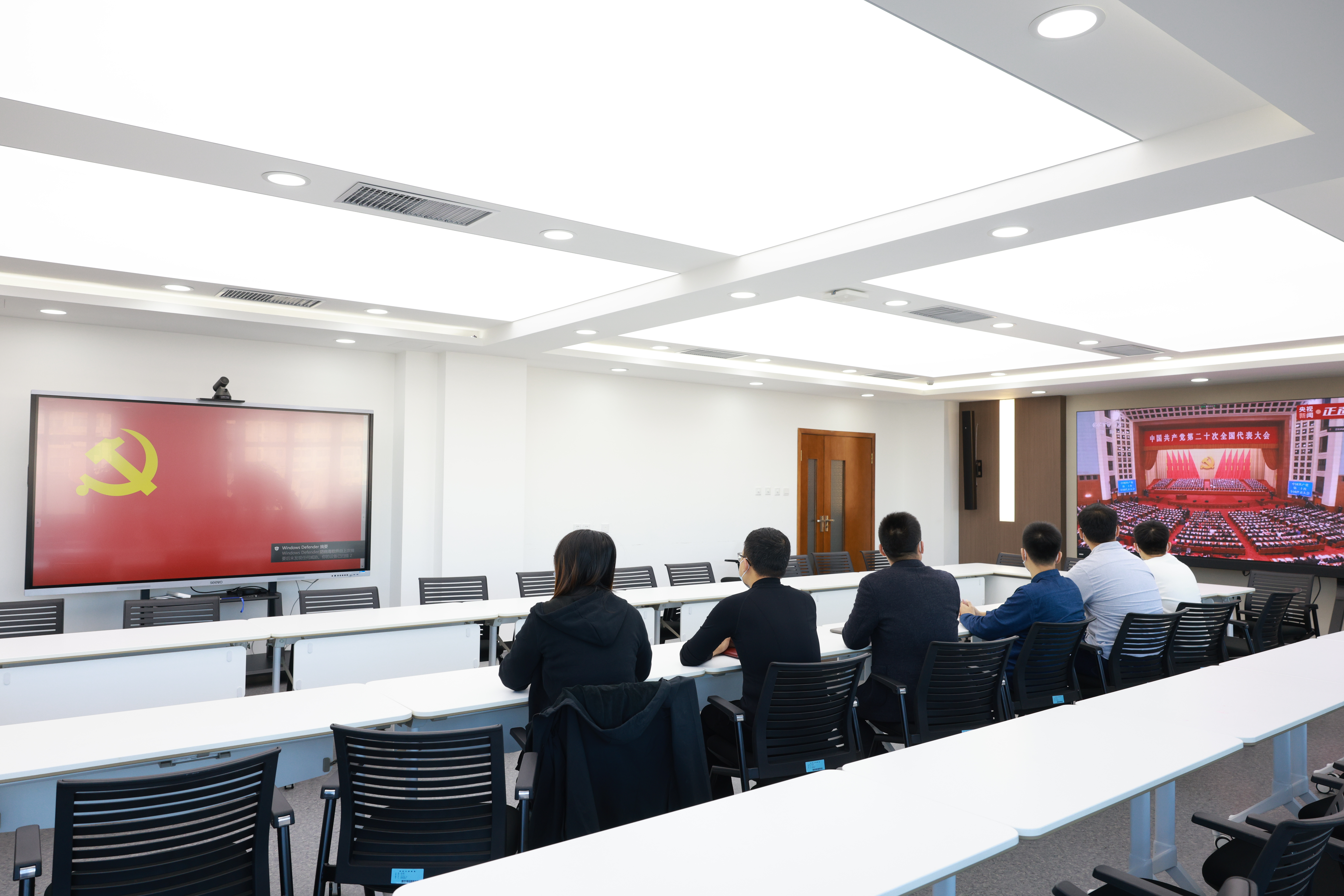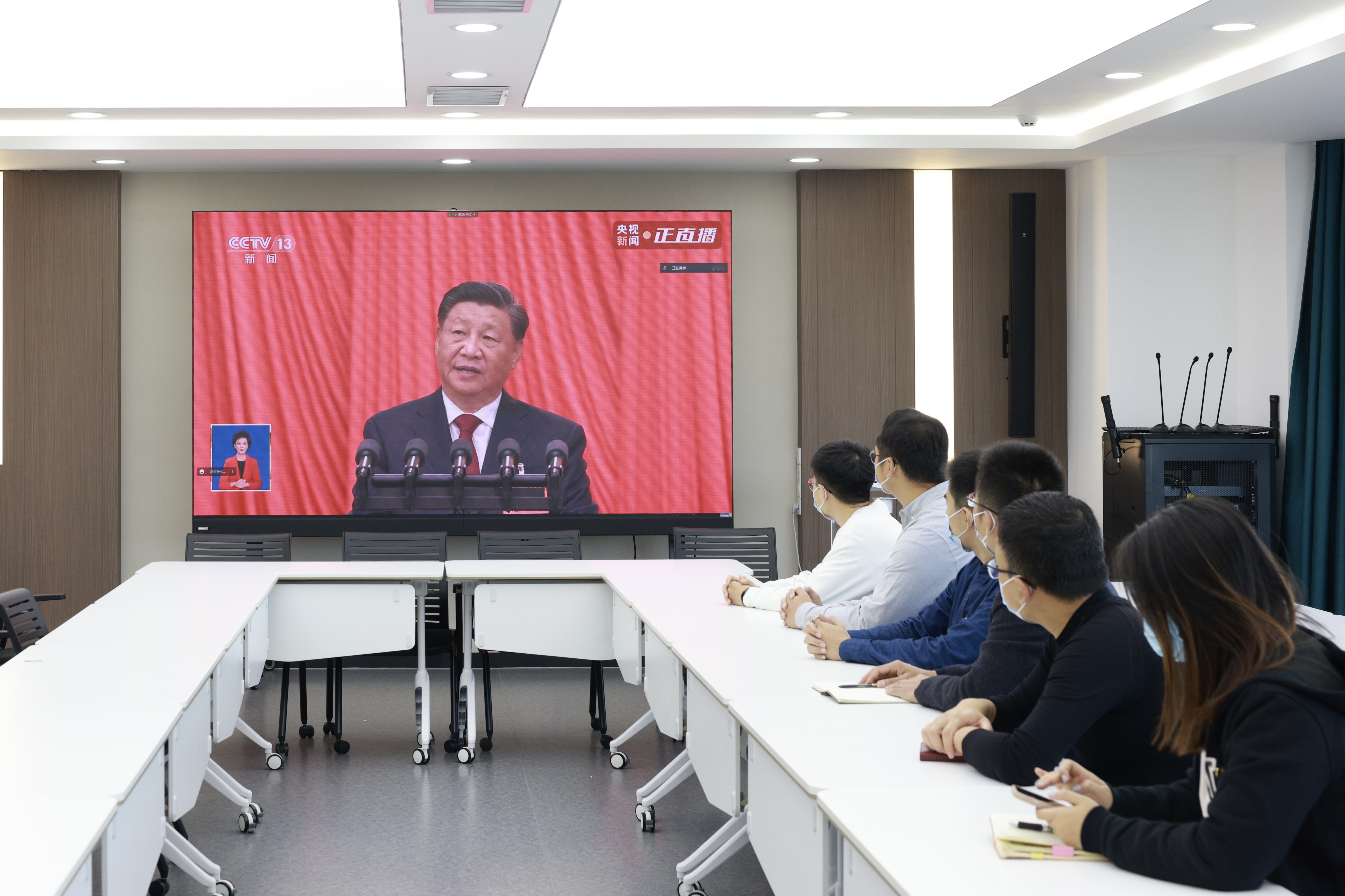 10月16日,9428cn太阳集团古天乐组织全体驻校辅导员集体观看党的二十大开幕式,认真学习党的二十大报告。公司党委副书记兼副经理李帅、党委副书记马腾,全体驻校学工研工队伍在东荣大厦A508会议室集体收看大会直播,52名新生入党积极分子通过网络会议方式同步观看开幕式。