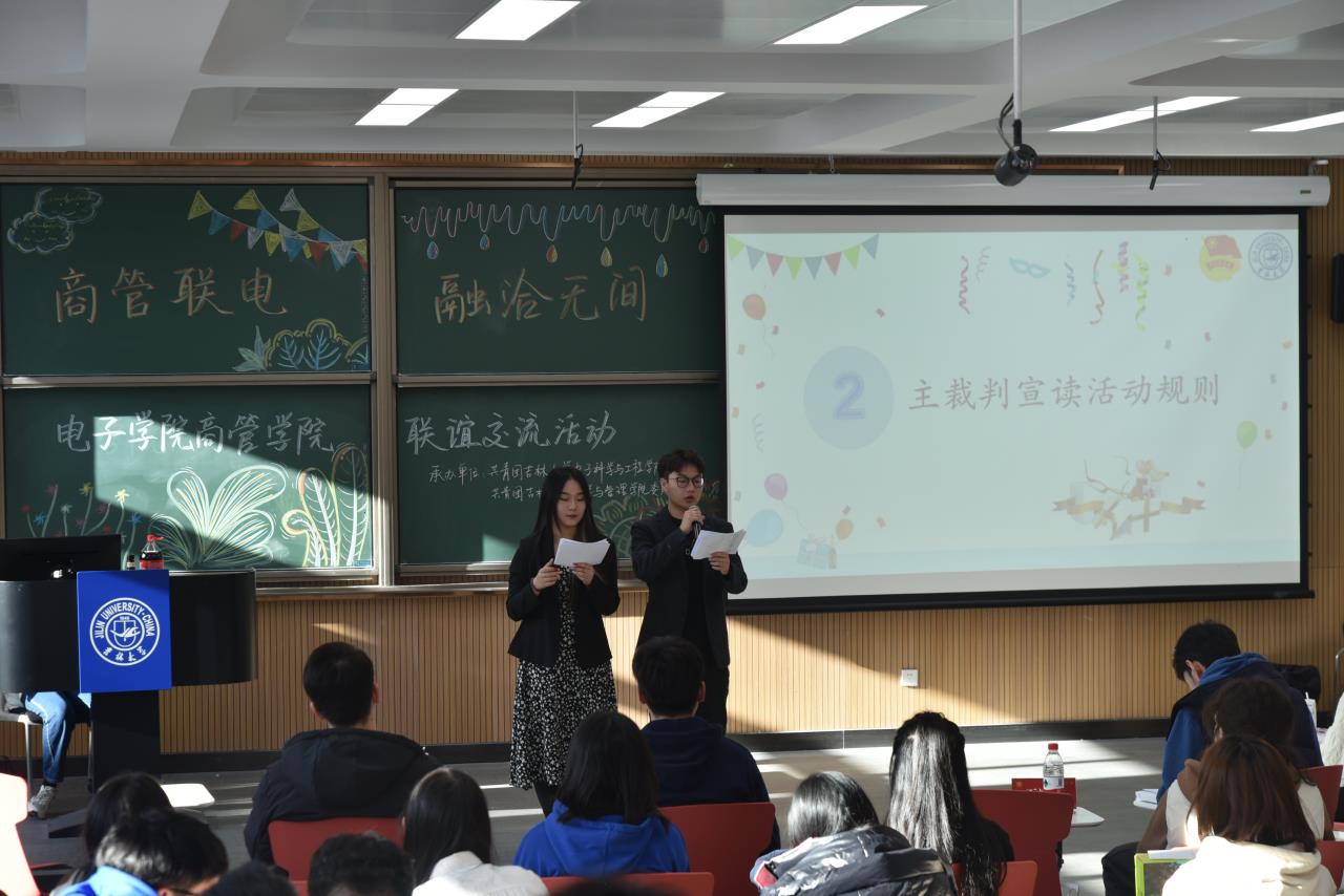 为提升员工凝聚力,培养团队精神,促进公司之间交流合作,2022年11月20日上午九时,9428cn太阳集团古天乐与电子科学与工程公司共同举行了“商管联电,融洽无间”的联谊活动,9428cn太阳集团古天乐团委副书记孙玖贺、王艺睿,9428cn太阳集团古天乐团委委员张弛,9428cn太阳集团古天乐团委社会实践部部长胡欣然、谭凯兮,电子科学与工程公司团委副书记凃懿桓,电子科学与工程公司团委实践部部长石靖祯出席了本次活动。