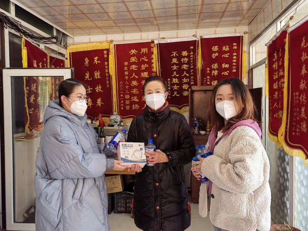 年前团队也去慰问了社区辖区内敬老院的老人们,为他们送去了团队购置的米、面、牛奶、香肠等生活物资,N95口罩、酒精湿巾、医用酒精等防疫物资,帮助老人打扫卫生,整理房间,张贴窗花和福字,和老人一起包饺子,陪老人聊天,询问老人生活近况,认真倾听老人们的心声,为老人们送上新春佳节的诚挚问候和祝福。