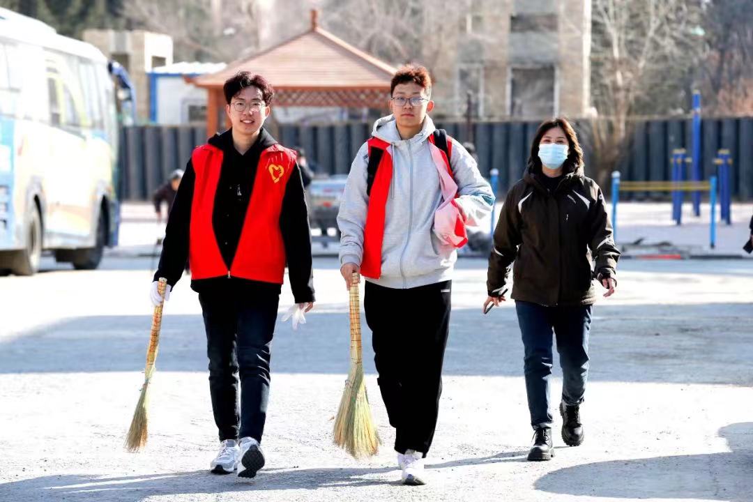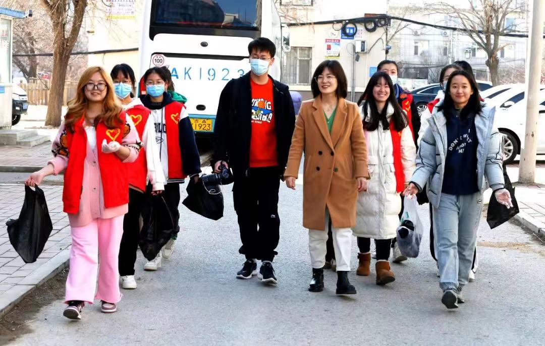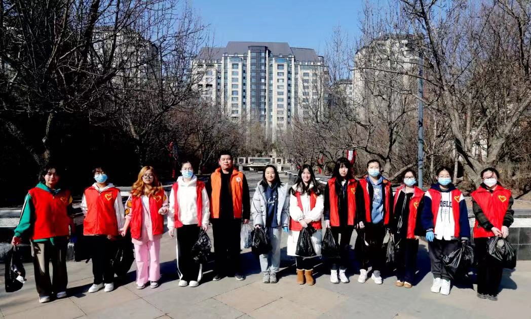 3月8日活动当天,在院团委的组织下,同学们身穿红色马甲,乘车来到了南湖街道二二八社区,参与了在附近花园捡拾垃圾、清扫楼道等志愿服务。