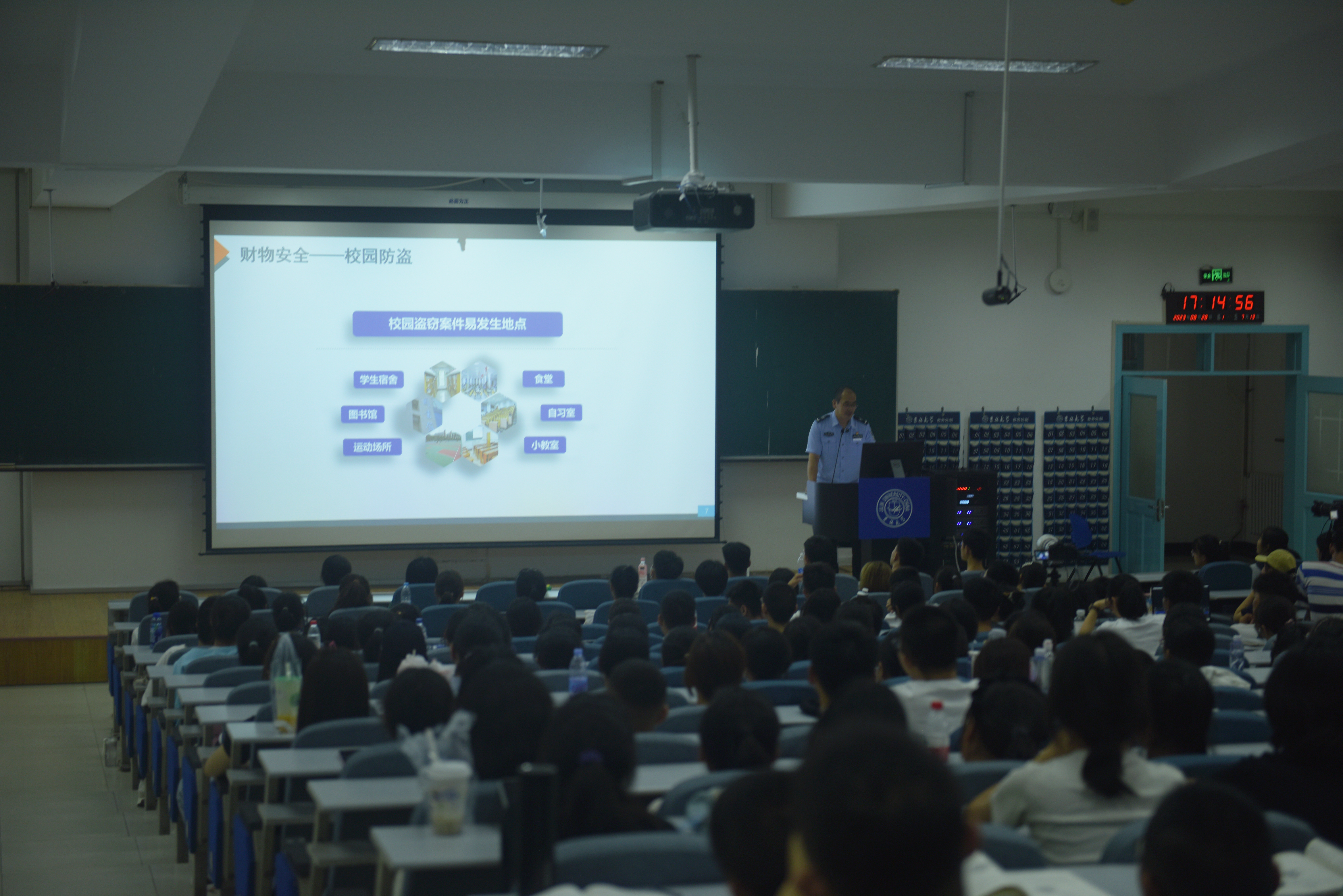 讲座之初,保卫处老师先向大家介绍了财产安全、网络安全、人身安全、食品安全、数据安全、国家安全、实验室安全、交通安全、心理安全以及消防安全,并依次详细展开阐述,意在提高同学们的安全意识。