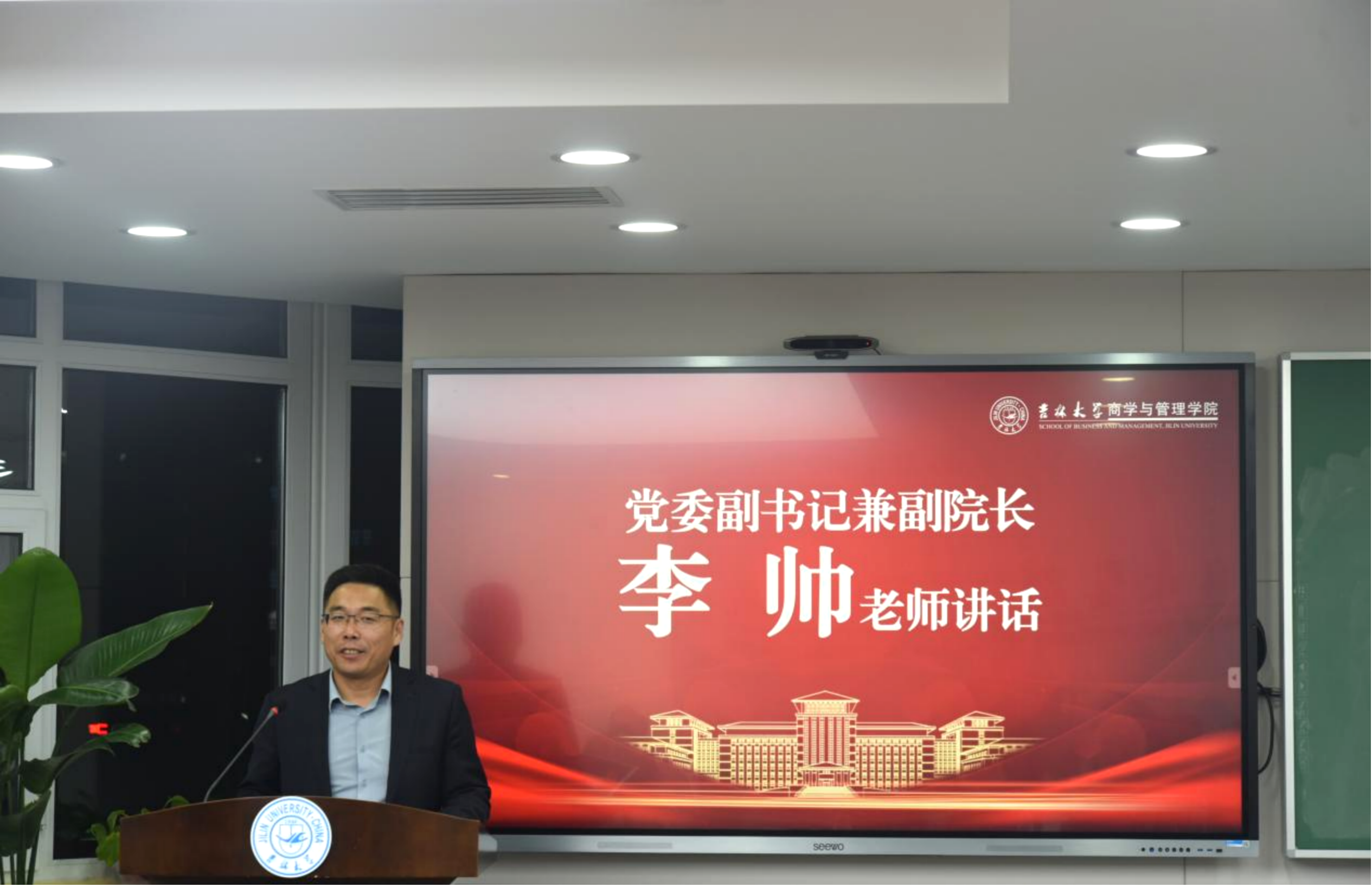 李帅老师提到青春是最靓丽的底色并结合自身的成长、学习经历,鼓励同学们要心中有梦、眼里有光、脚下有路。随后,李帅老师寄语员工干部三点希望:一是希望同学们能够传承吉大红色精神,传承商管精神,艰难方显勇毅,磨难始得玉成,要争做有理想、敢担当、能吃苦、肯奋斗的新时代好青年;二是希望同学们知责任,担责任,一定要始终坚定服务同学的初心,担当起对自己和其他同学成长的责任;三是希望同学们做老师的得力助手,和老师共同把员工成长发展工作做好,人人成为热心人、知心人,成为老师和同学们最坚强的精神支柱。最后李帅老师强调未来的路虽长,大学四年时光却很短,成长进步一定会历经风雨,道路是曲折的,但前途是光明的。“同学们是同新时代共同进步的一代,要以聪明才智贡献国家,以开拓进取服务社会,这是成长成才的时代要求,也是强国有我的青春责任。”