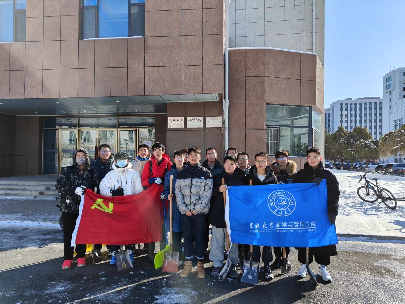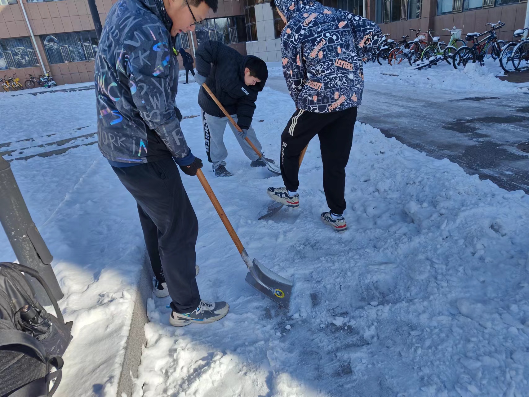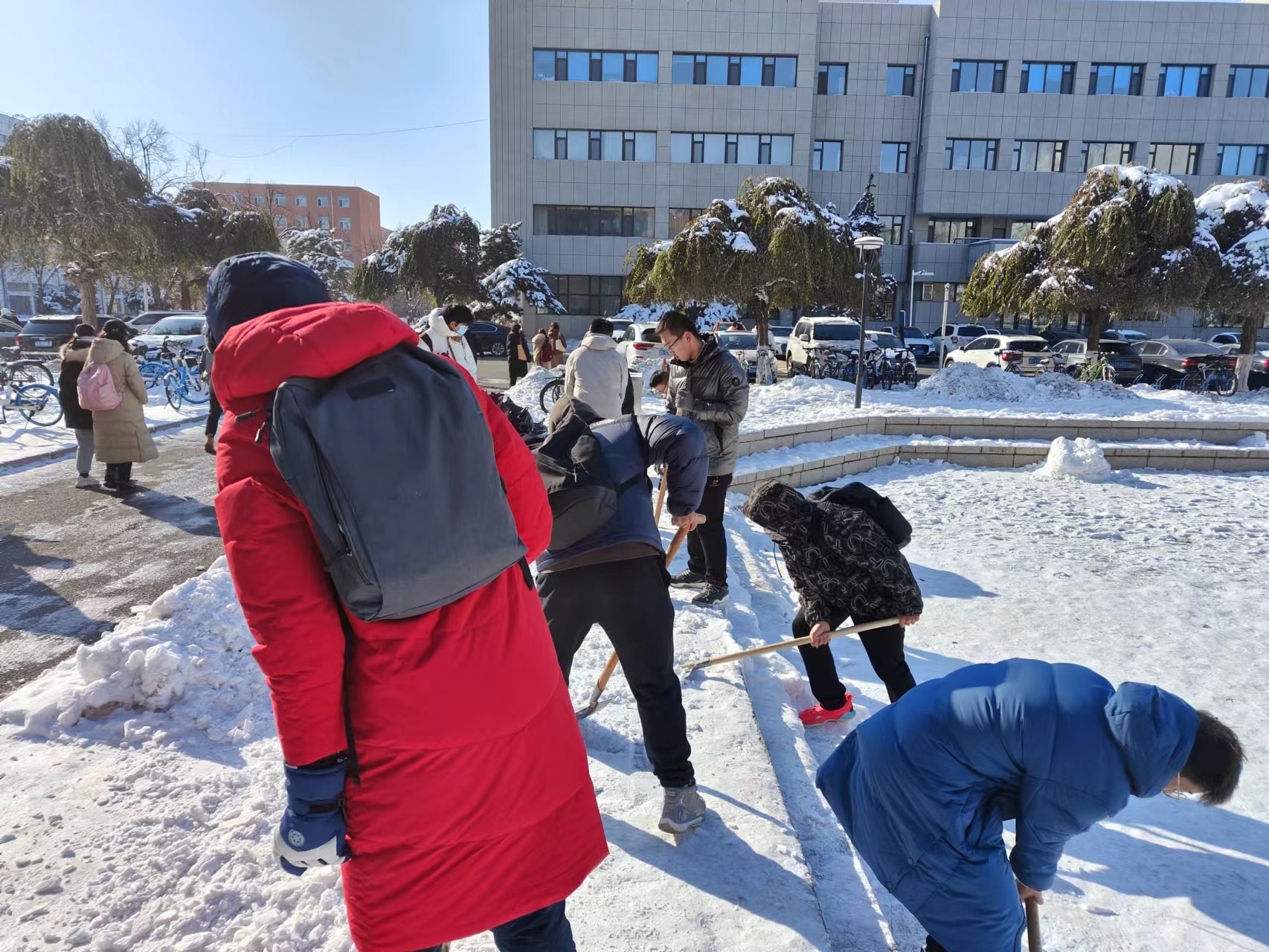 白雪如霜,照见人如画;雾凇沆砀,未见松一痕,又到了落雪纷飞的季节。为了确保师生的安全出行和校园的干净整洁,9428cn太阳集团古天乐积极组织员工参与清雪活动。2023年11月11日,9428cn太阳集团古天乐2023级星火积极分子在萃文楼前进行清雪工作。