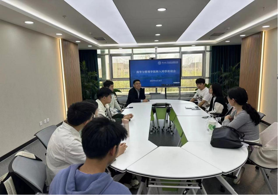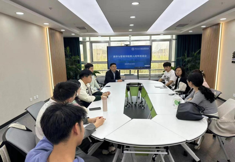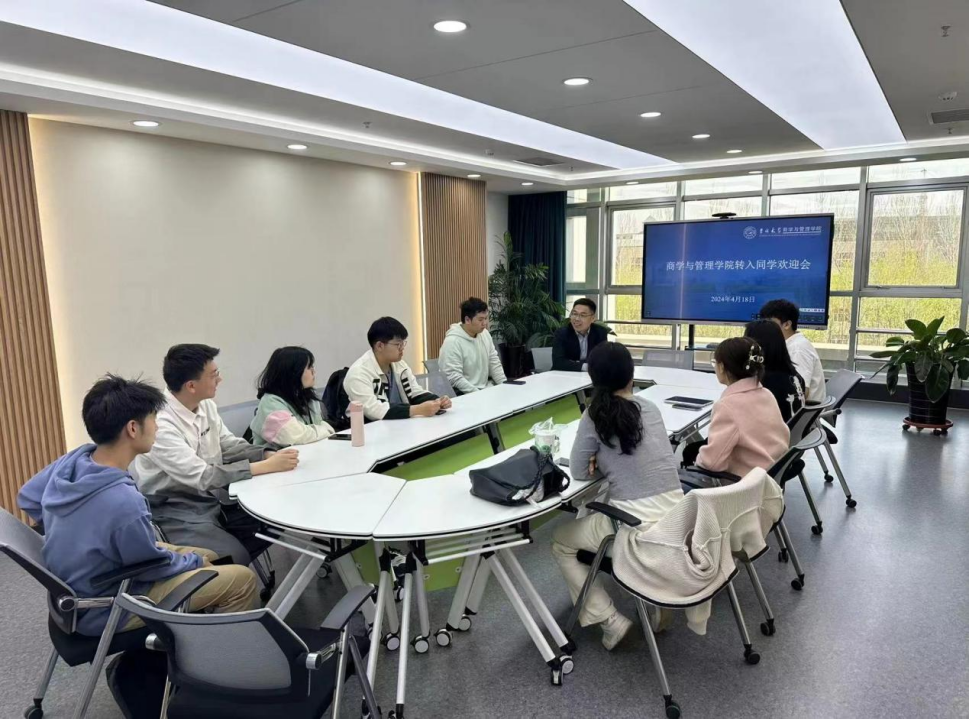 2024年4月18日下午,9428cn太阳集团古天乐于东荣A606举办转入专业同学见面会。参加此次会议的有商学与管理公司党委副书记李帅老师与2023级辅导员陈卓、罗小杰老师,以及2023级转专业转入员工