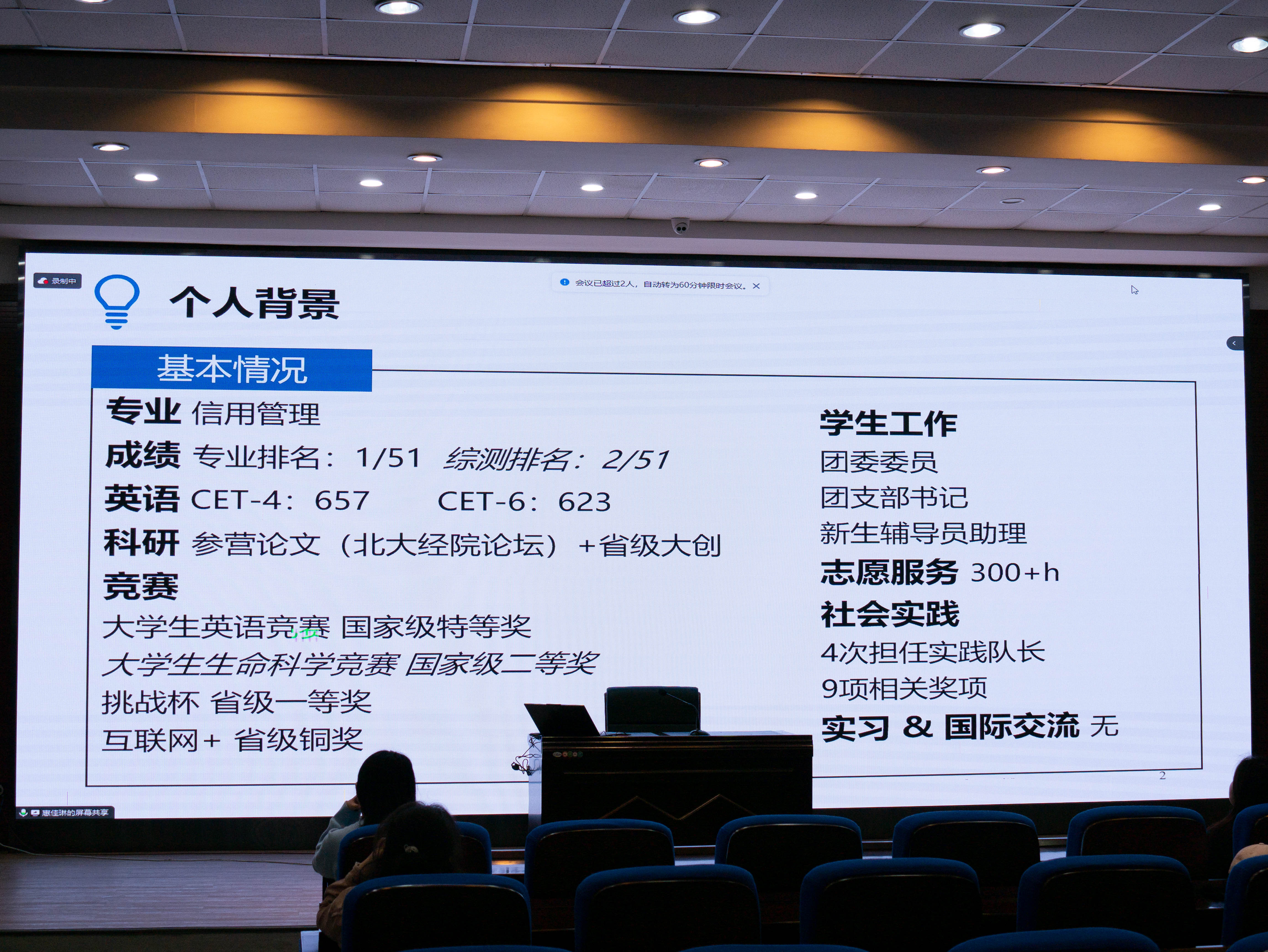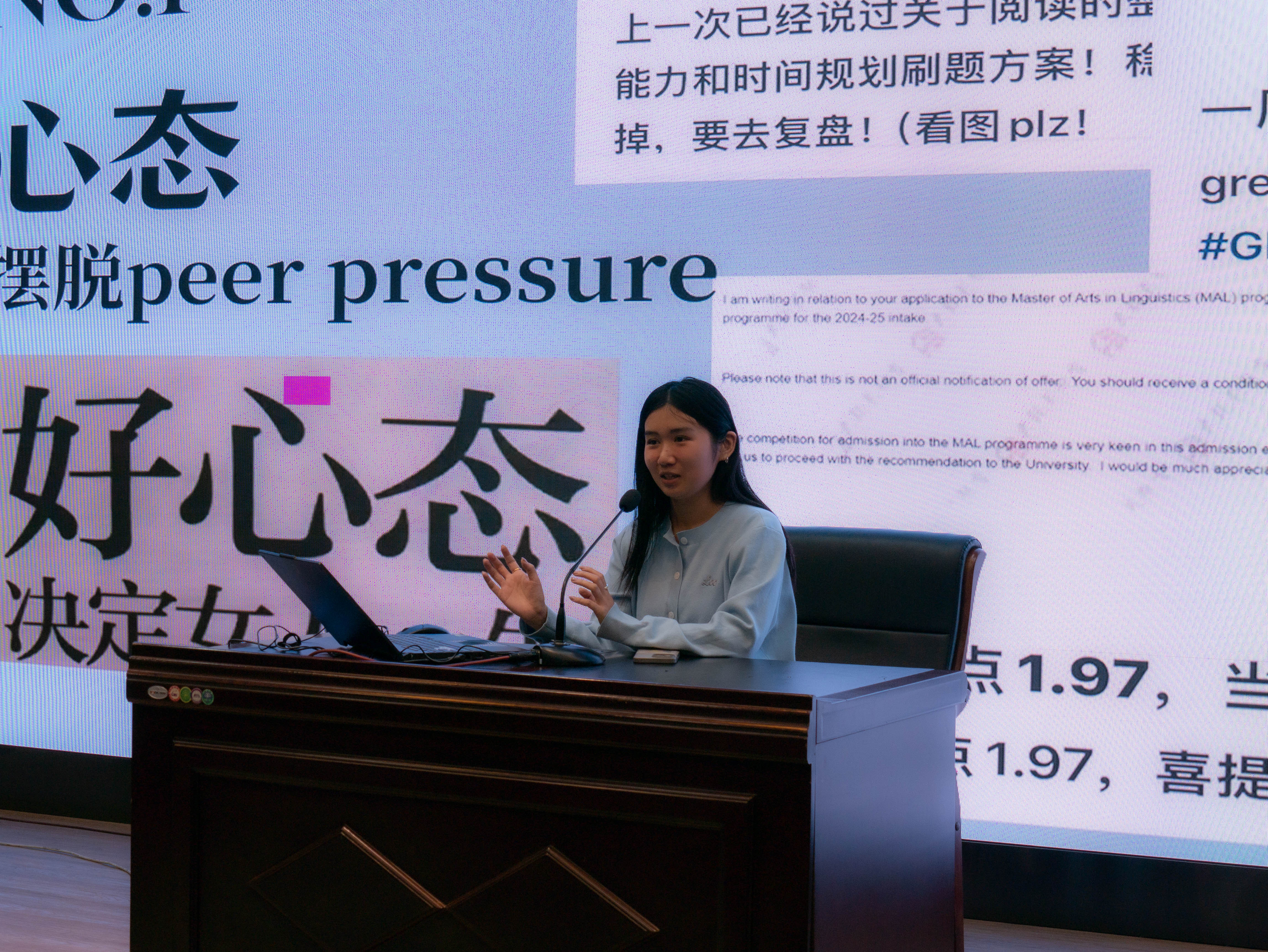 在分享过程中,学长学姐们分别从留学,推免,保研,考研及就业等多个方面为学弟学妹们分享经验,并耐心解答他们的疑问。王北鸽学姐详细地分享了出国留学需要准备的各种事项,并交流了留学国家,公司的选择问题,学姐还建议有意留学的员工需要提前做好语言和文化准备,提前备考雅思托福,以更好地适应海外生活和学习。惠佳琳学姐分享了关于保研院校的选择以及夏令营的申报等方面的经验。刘桓妤学姐同样分享了关于留学方面的经验,它不仅分享了自己大学四年不同阶段的规划,还从细节入手,分阶段给出了具体的规划建议,同时介绍了不同留学策略的优略势。卢慧颖学姐详细地为大家分析了公司关于直博保研的相关政策,并为大家辨析了直博和保研的不同之处,使我们对自己的学业规划有了更清晰的认识。最后,王秋凝学姐以自己过去一年的亲身备战考研经历为我们分享了备战考研不同阶段需要做的事,从细节入手,详尽地分享了自己在不同备战阶段每天的时间分配,并推荐了相关学习资料,给大家提供了重要的帮助。