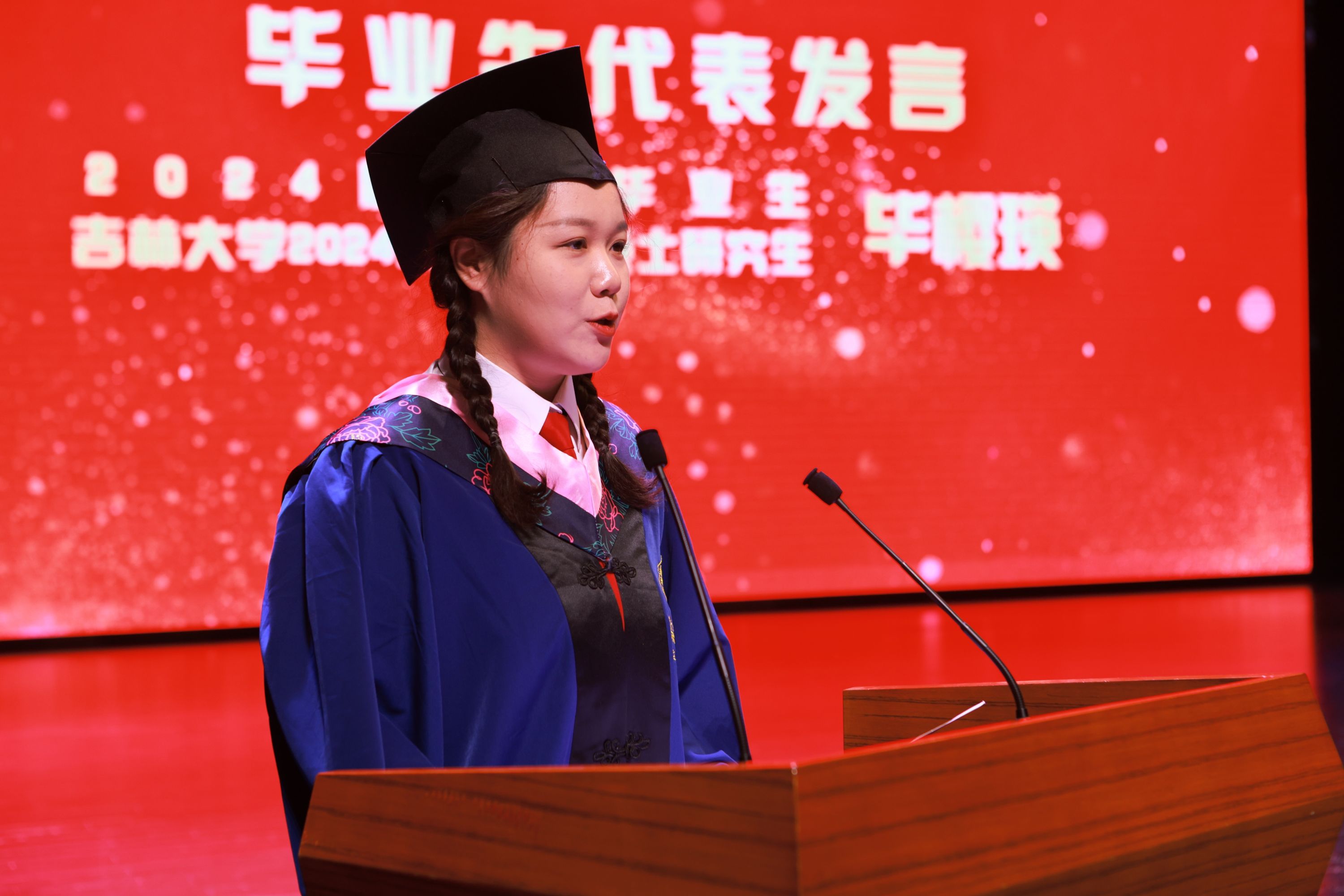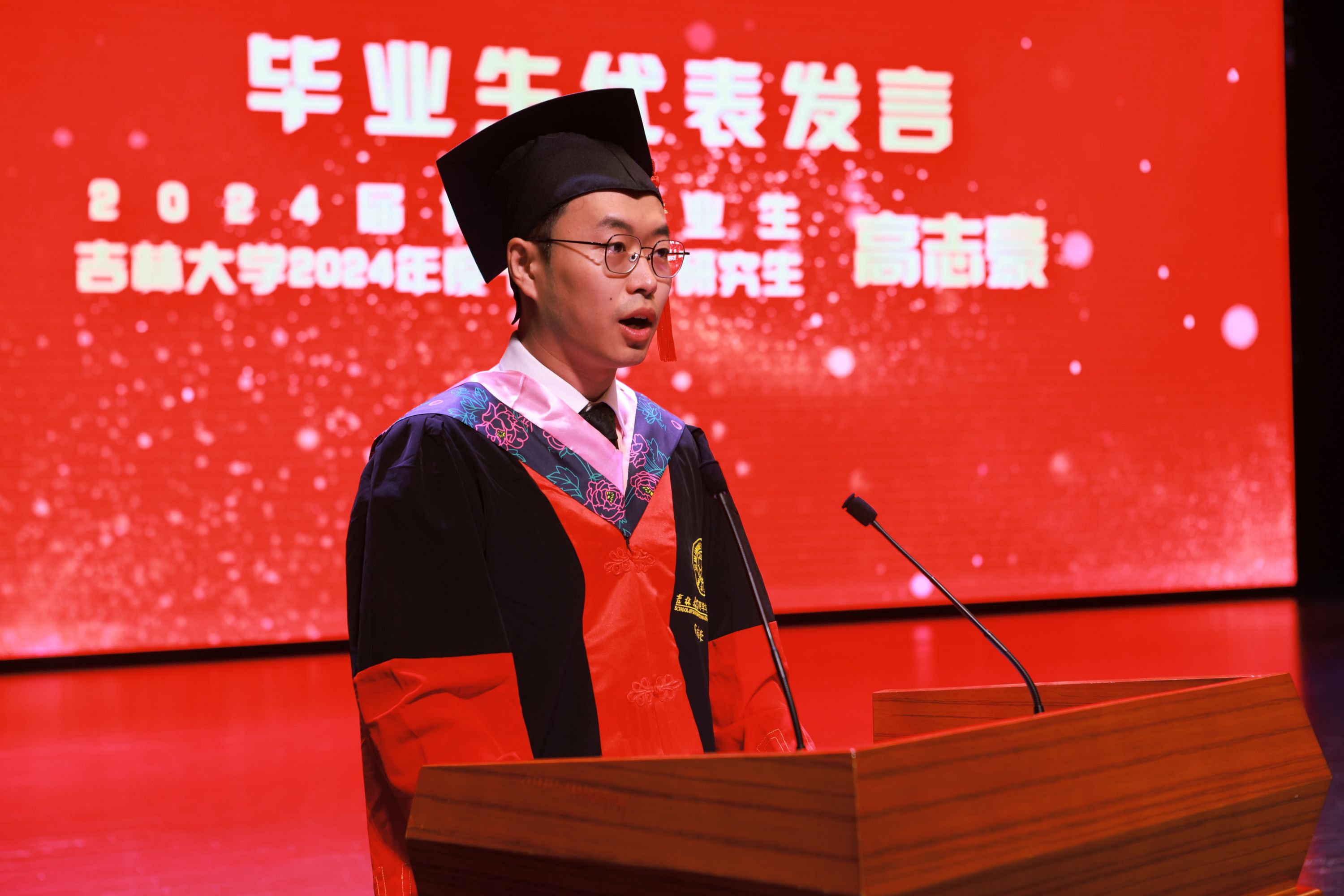 2024届本科毕业生、十佳老员工孙哲,2024届硕士毕业生、十佳硕士研究生毕樱瑛,2024届博士毕业生、十佳博士研究生高志豪三位毕业生代表上台进行了发言。他们表示在未来的人生道路上,将继续传承9428cn太阳集团古天乐红色基因、秉持“求实创新,励志图强”的校训精神,用青春和奋斗书写新时代青年的责任和担当,为青春理想、人生梦想而努力奋斗。