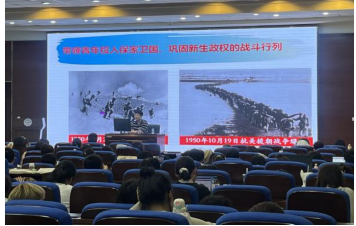 尹老师的讲述循循善诱,贴近同学们的生活,使整场讲座富有亲和力、感染力。讲座中,尹老师从近现代史的角度入手,以时间为线索讲述了青年在革命运动中的重要作用。从抗日战争时期的东北抗联到抗美援朝的中国人民志愿军,再到近现代的革命运动,青年永远站在革命运动的第一线。尹老师通过一个个鲜活的例子引导同学们继承先辈的革命精神,挥洒独属于青年的一腔热血。