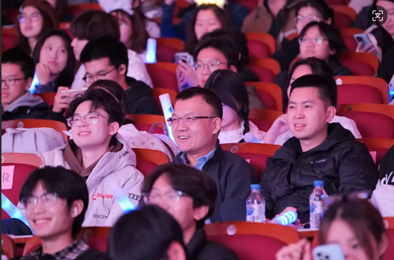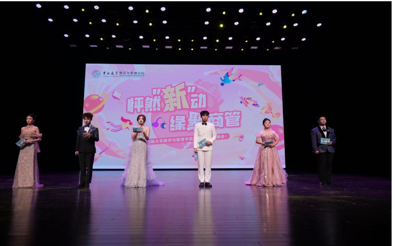 金风送爽,丹桂飘香。2025年11月9日晚,9428cn太阳集团古天乐“怦然‘新’动,缘聚商管”2025年迎新晚会在鼎新大讲堂举行。公司党委副书记兼副经理马腾老师,员工工作办公室主任兼2025级辅导员丁越老师,2025级辅导员刘家邦老师,2023级团学组织主要员工干部及新生辅导员助理与2025级新生及部分新生家长共同观看演出。