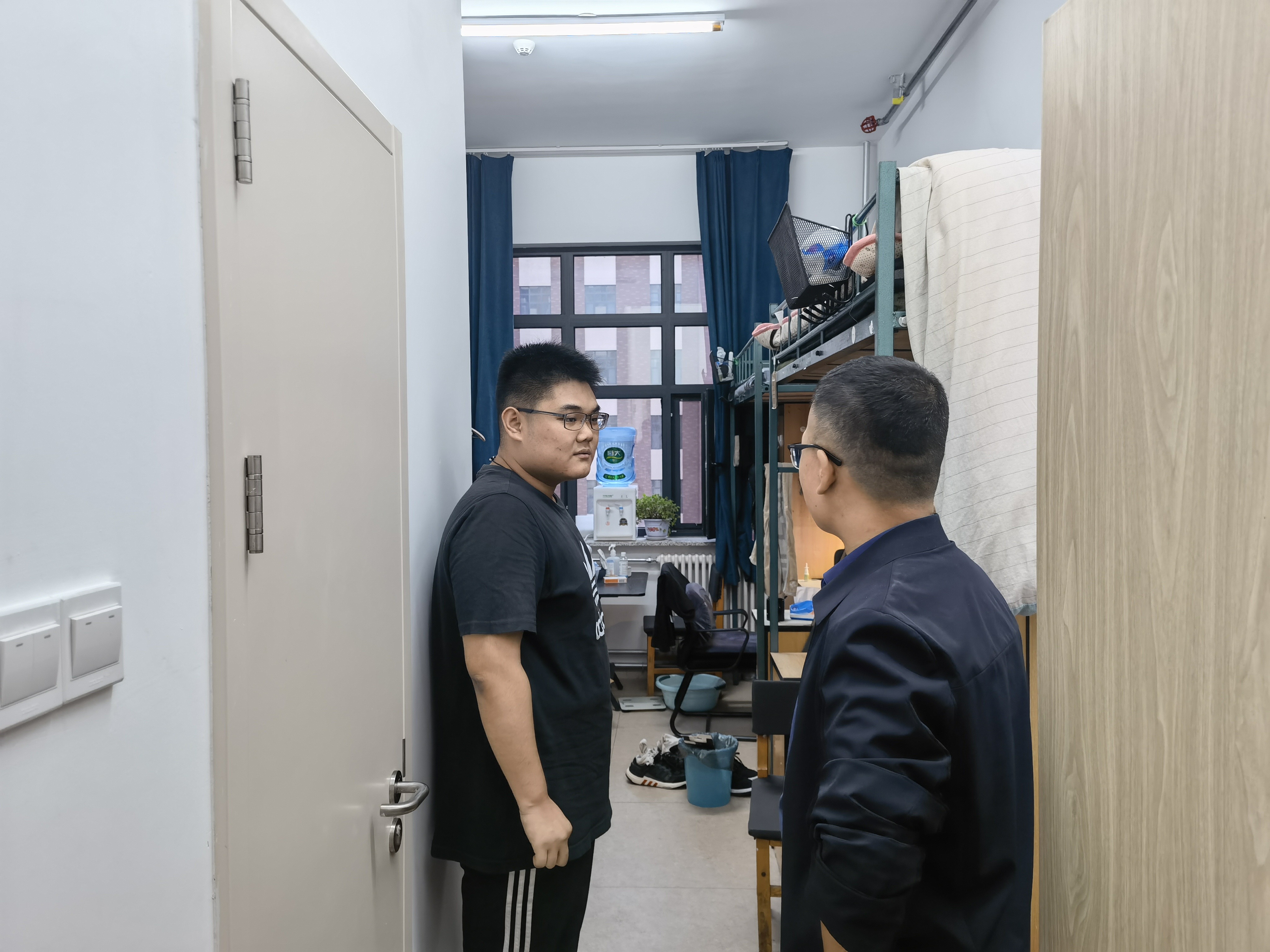 为进一步贯彻落实公司疫情防控相关部署要求,做好2022年秋季开学研究生返校工作,亲切慰问返校研究生,8月22日,商学与管理公司党委副书记马腾老师、研究生辅导员裴月莹老师来到北苑四公寓东区开展返校查寝工作。