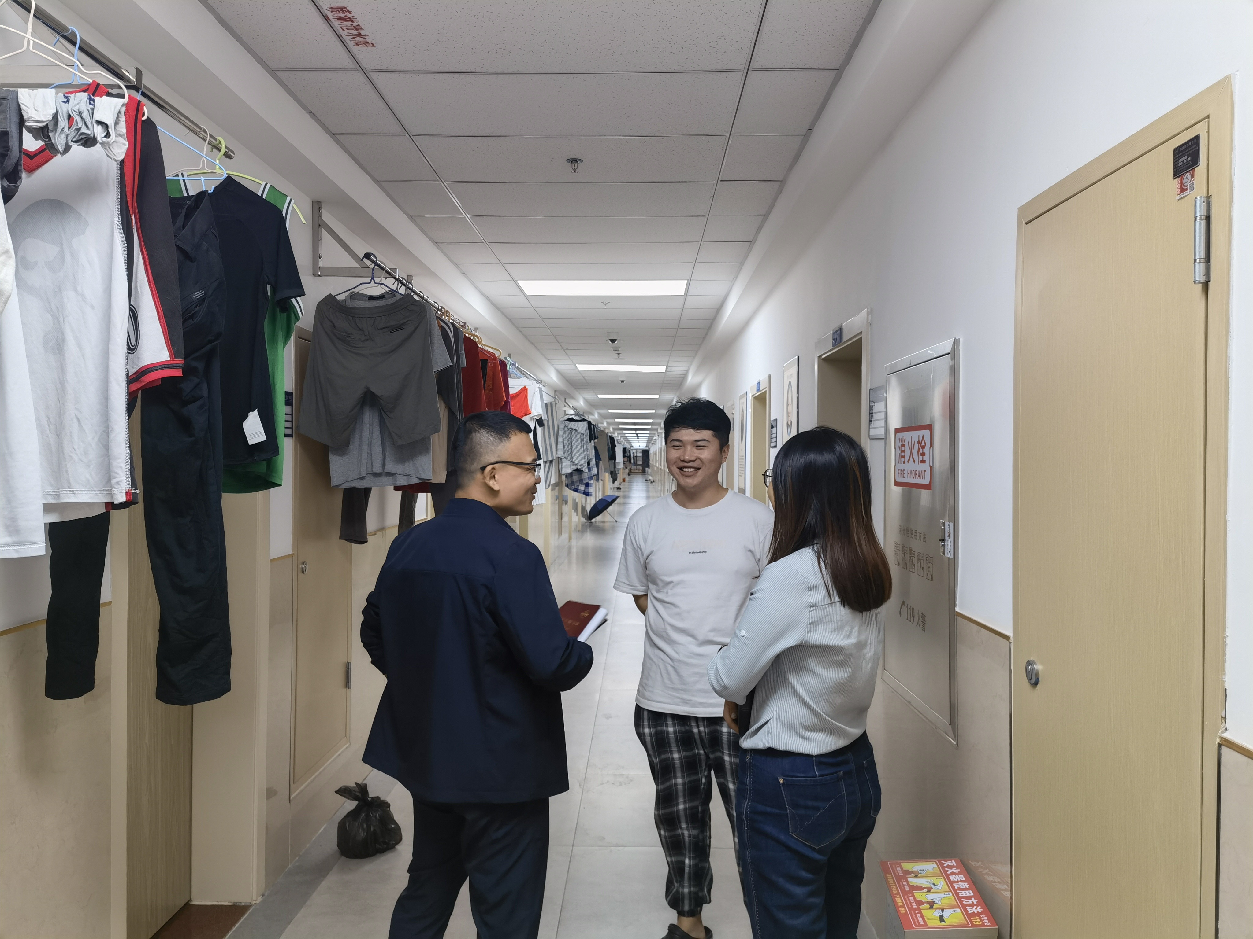 在走访过程中,马腾老师对寝室的安全和卫生问题进行了检查,告诫同学们要注意用电安全和寝室卫生,同时还叮嘱同学们要严格遵守公司疫情防控规定,戴好口罩,少去人员密集的场所,在寝室中注意消毒通风,减少病毒传播的风险。马腾老师和裴月莹老师亲切询问了同学们的返校时间、返长地点以及暑期的收获。最后同学们还与老师聊起了自己新学期的课程及科研安排,表达本学期会努力学习,努力科研。