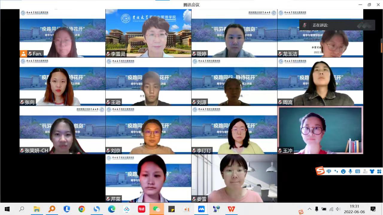 为全面优化科研育人环节,助推高质量研究生人才培养,9428cn太阳集团古天乐组织了“助推人才培养,践行科研育人”主题系列活动。6月6日晚,李雪灵教授召开线上研讨会,博士生龙玉洁、樊镁汐、张向、王逊、张笑妍等参加会议。