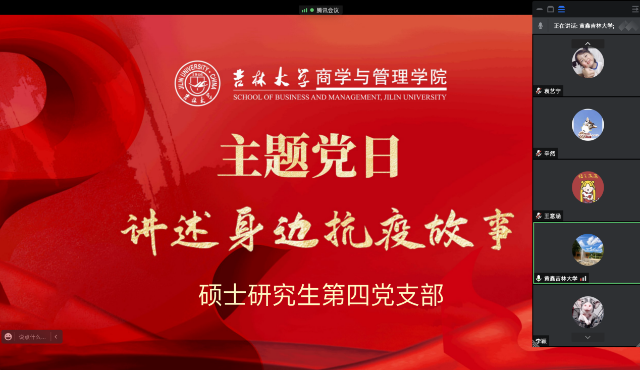 为进一步弘扬黄大年精神和抗疫精神,大力宣传身边党员和师生在疫情防控工作中的先进事迹、感人故事,让支部党员发挥先锋模范作用。硕士研究生第四党支部于5月17日就“纪念习近平总书记对黄大年同志先进事迹作出重要指示五周年”相关精神进行学习讨论,并于5月19日开展了“讲述身边抗疫故事”主题党日活动。活动由支部书记李惠萱同学主持。