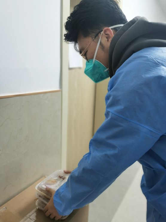 为了保证各位同学第一时间能够吃上热乎的饭菜,温宝山同学坚持每天6点起床,第一时间领取早餐,与其他各公司负责人及时沟通,协调运餐车使用,提高运送效率。在晚间协助分发试剂盒,收集试剂盒检测情况,最晚时直到11点依旧在统计结果。晨披朝露,只为准时准点将伙食送到同学身边。每一份准时送达的饭菜、每一次不会缺失的分餐,背后是他们不曾言说的坚持,是始终铭记在心的责任。