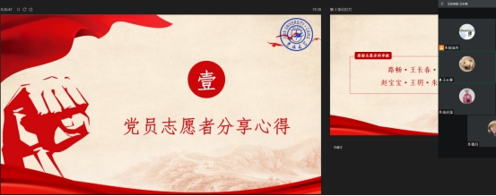 随后,几位参加了志愿者工作的同学也分享了自己工作期间的感受。王长春表示,疫情打破了原有的平静,口罩挡住了大家的面容,但却没能挡住我们对生活的热爱,作为党员,在这个特殊时期能够服务大家,他所感受到的是满满的幸福。金庆泽表示,公司全力以赴确保了同学们封闭期间的饮食,员工和社会各界也向吉大传递爱心,而封闭在校内的党员,就更需要做些什么去减小疫情给同学们带来的影响。韩精滢表示,封闭在宿舍,虽然每天不能够外出,但是志愿者服务工作却让自己更加充实,每天穿梭在走廊内,运动步数的霸榜是自己最好的表彰。路畅表示,通过志愿者服务工作,自己深切地感受到平静的生活和充足的供给背后,是有那么多人的辛苦付出,与保洁阿姨互道的辛苦,是对心最温暖的补给。