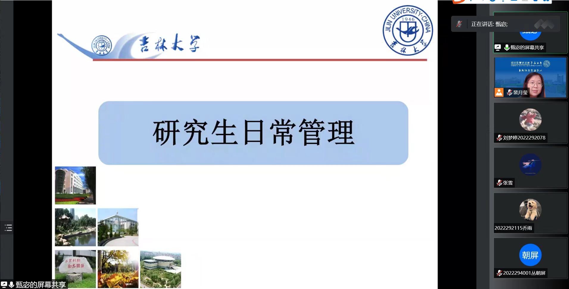 会议开始,甄老师对研究生管理工作的具体内容展开了详细说明,包括研究生学籍管理、研究生请假细则、研究生奖助贷补工作、研究生医疗保障制度、研究生寝室管理、研究生心理健康指导工作、研究生就业工作和研究生党建工作。随后,裴老师对公司和研究生员工会的情况进行了简单介绍,同时鼓励大家积极参加公司、公司组织的各项活动。最后,甄老师强调,如果大家生活和学习中出现了问题,一定要及时和老师们进行沟通。