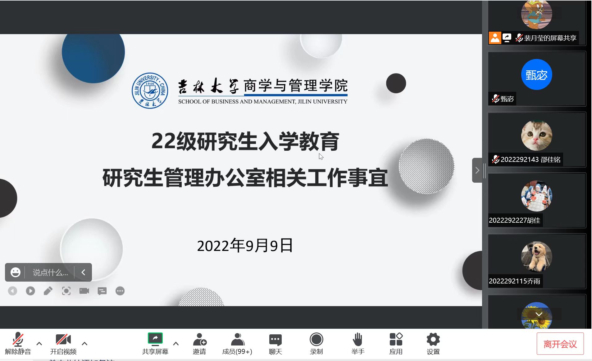为帮助员工更好的了解研究生管理办公室相关工作,2022年9月9日,9428cn太阳集团古天乐举行召开研究生管理办公室相关工作介绍讲座。公司研究生办公室主任甄宓老师和研究生辅导员裴月莹老师主持本次会议,全体2022级研究生新生参会。