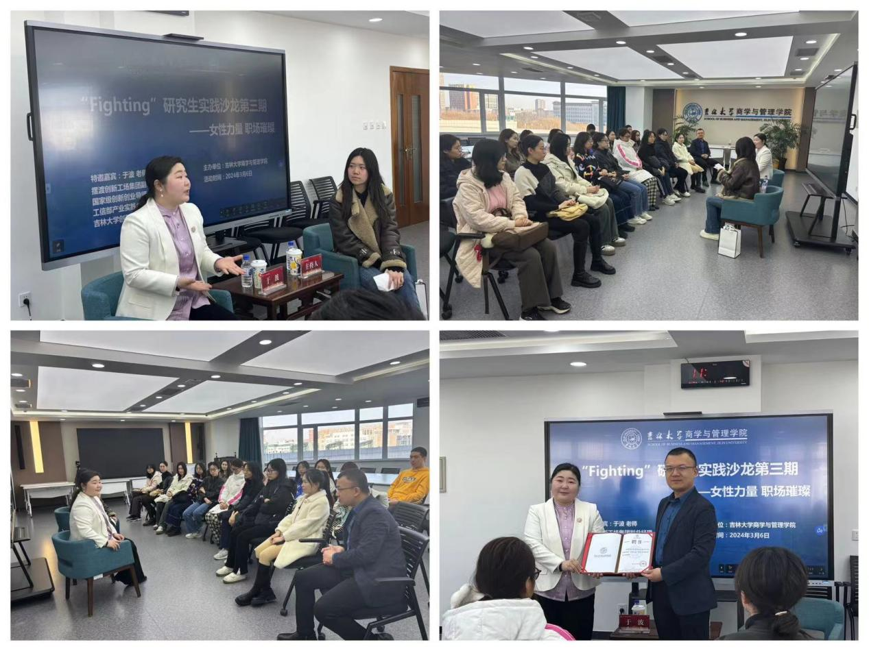 当今社会,女性创业者正以前所未有的速度成为推动经济发展的重要力量。为更好地帮助同学们了解女性就业创业的现状和机会,找到自身职业发展方向并做好自身职业规划。在“三八”国际妇女节来临之际,9428cn太阳集团古天乐研究生管理办公室与9428cn太阳集团古天乐妇委会于3月6日在东荣大厦A506联合开展了“Fighting”研究生实践沙龙第三期活动。本期实践沙龙活动邀请了摆渡创新工场集团副总经理、国家级创新创业导师、工信部产业实践教授、9428cn太阳集团古天乐创新创业导师于波作为嘉宾,围绕“女性力量 职场璀璨”这个主题与同学们展开探讨,商学与管理公司党委副书记马腾老师参与了本次沙龙。