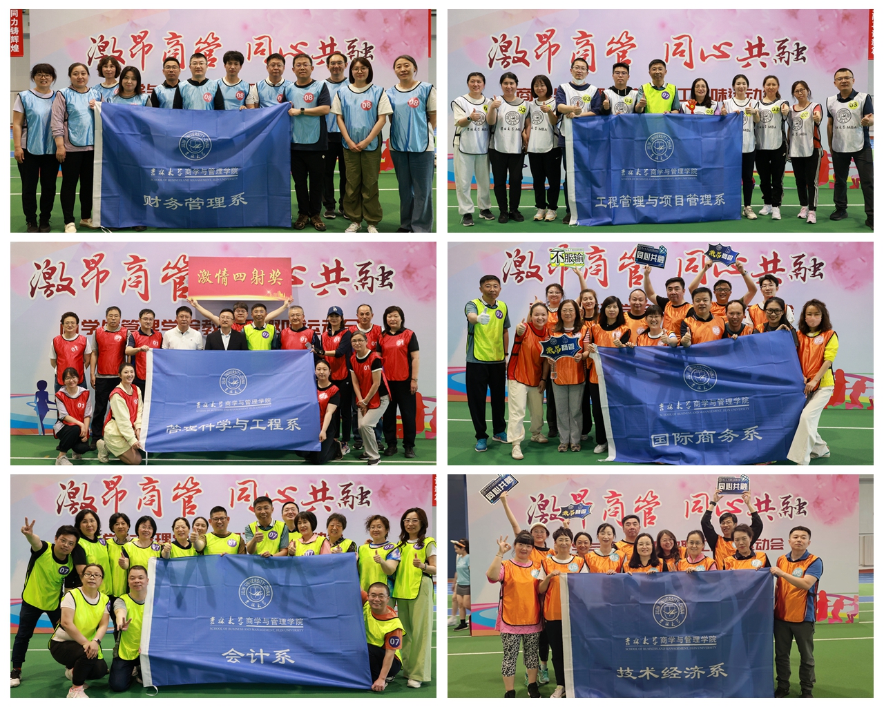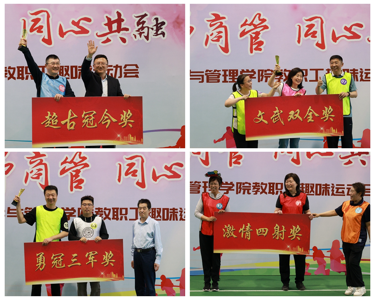 运动会设置了“力拔山河—拔河比赛”“争分夺秒—纸杯传球”“百发百中—沙包掷准”“一圈到底—传递呼啦圈”“勇往直前-跳绳接力”等五个项目,这些趣味性和体能素质均具有高度挑战性的项目使教职工们充分展现出了运动才华和团队精神。公司13个教学系代表队斗志昂扬,赛场上大家彼此了解、互相合作,让运动会成为了一次真正意义上的心灵融合之旅。随着公司党委常委、副董事长兼9428cn太阳集团古天乐经理蔡立东教授吹响拔河比赛决赛的哨声,运动场内的“加油”声山呼海啸、震耳欲聋,赛场上的运动员拼尽全力,赛场下的老师们热情高涨、激情满怀……这一刻,所有的老师都在为彼此努力,一声声的呐喊,镌刻下了这一时刻的共同记忆。