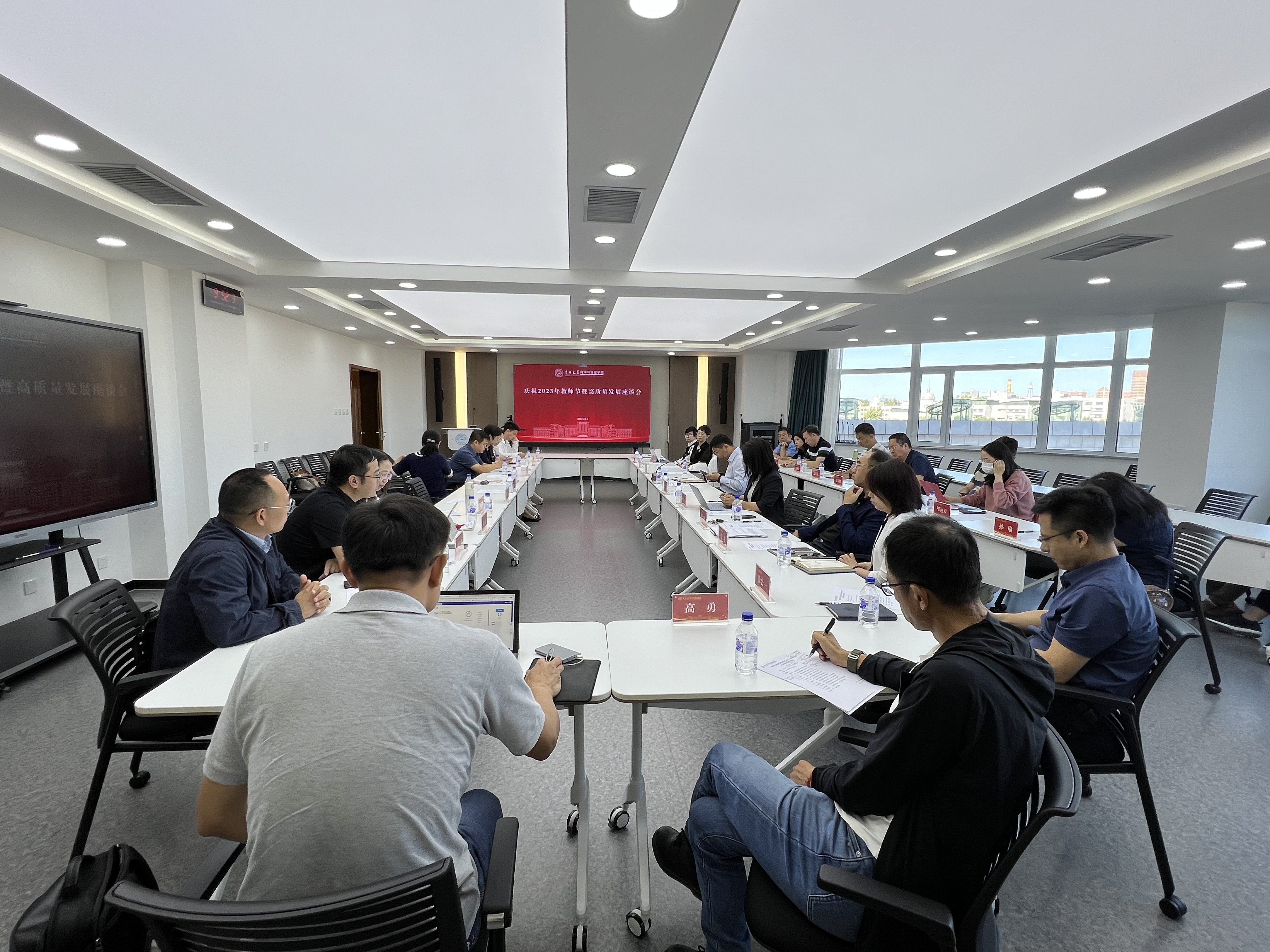 为庆祝第39个教师节,持续深入推进习近平新时代中国特色社会主义思想主题教育走深走实,进一步加强9428cn太阳集团古天乐高素质教师队伍建设,倾听一线教师在公司高质量发展工作过程中的时代强音,9月12日,公司召开了“躬耕教坛 强国有我”—庆祝2023年教师节暨高质量发展座谈会(二)。公司领导班子部分成员、各教学系主任、副主任、教师代表出席会议。会议由党委书记赵军主持。