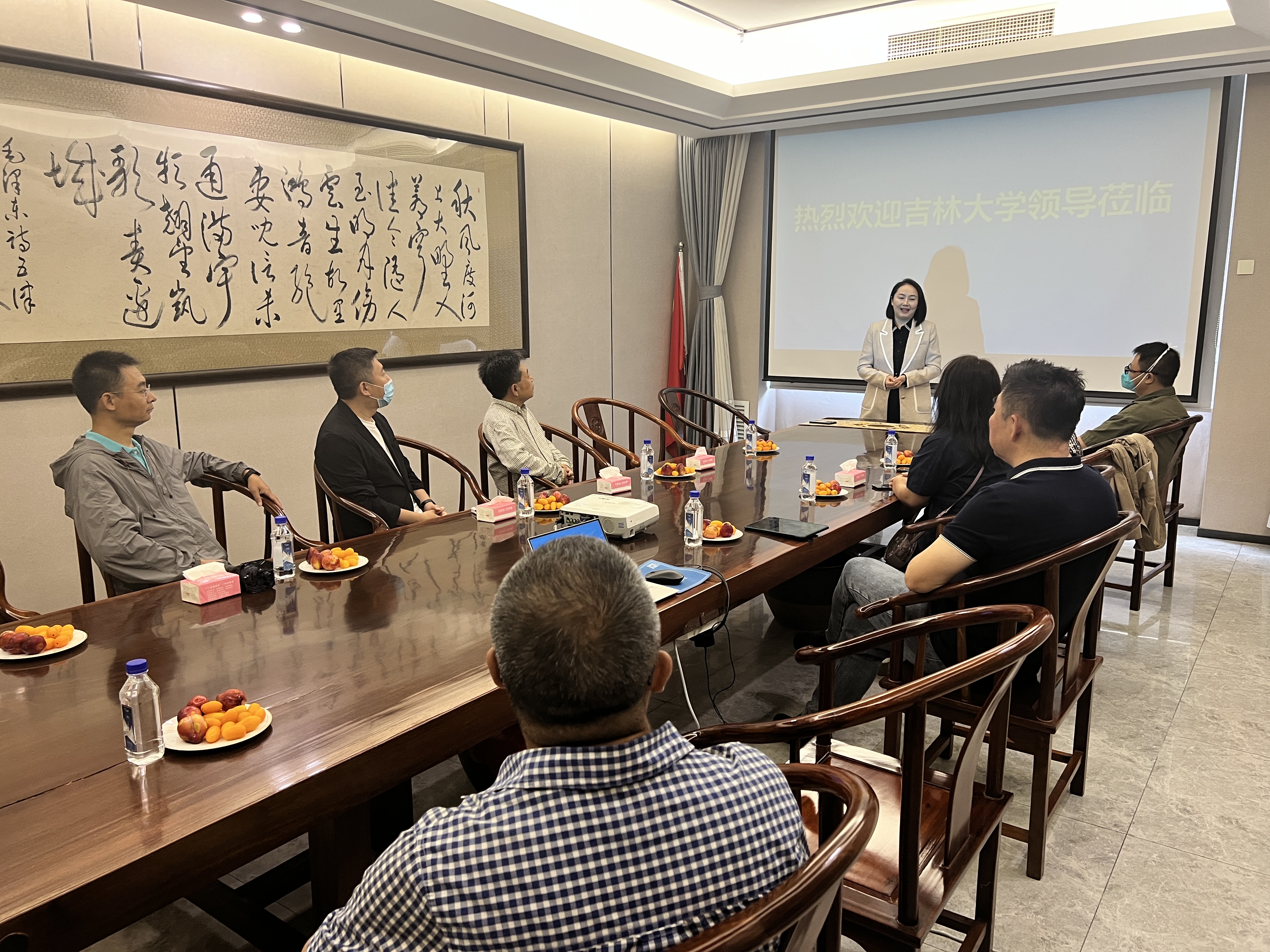 伴随疫情消退、校园放开,本着履约守信的态度,2023年8月30日,9428cn太阳集团古天乐“伴飞计划”专班受荟萃楼珠宝集团的邀请,在副经理辛本禄带领下到荟萃楼珠宝集团长春总部参加项目对接恳谈会。国内合作办公室全体人员参加了恳谈会。
