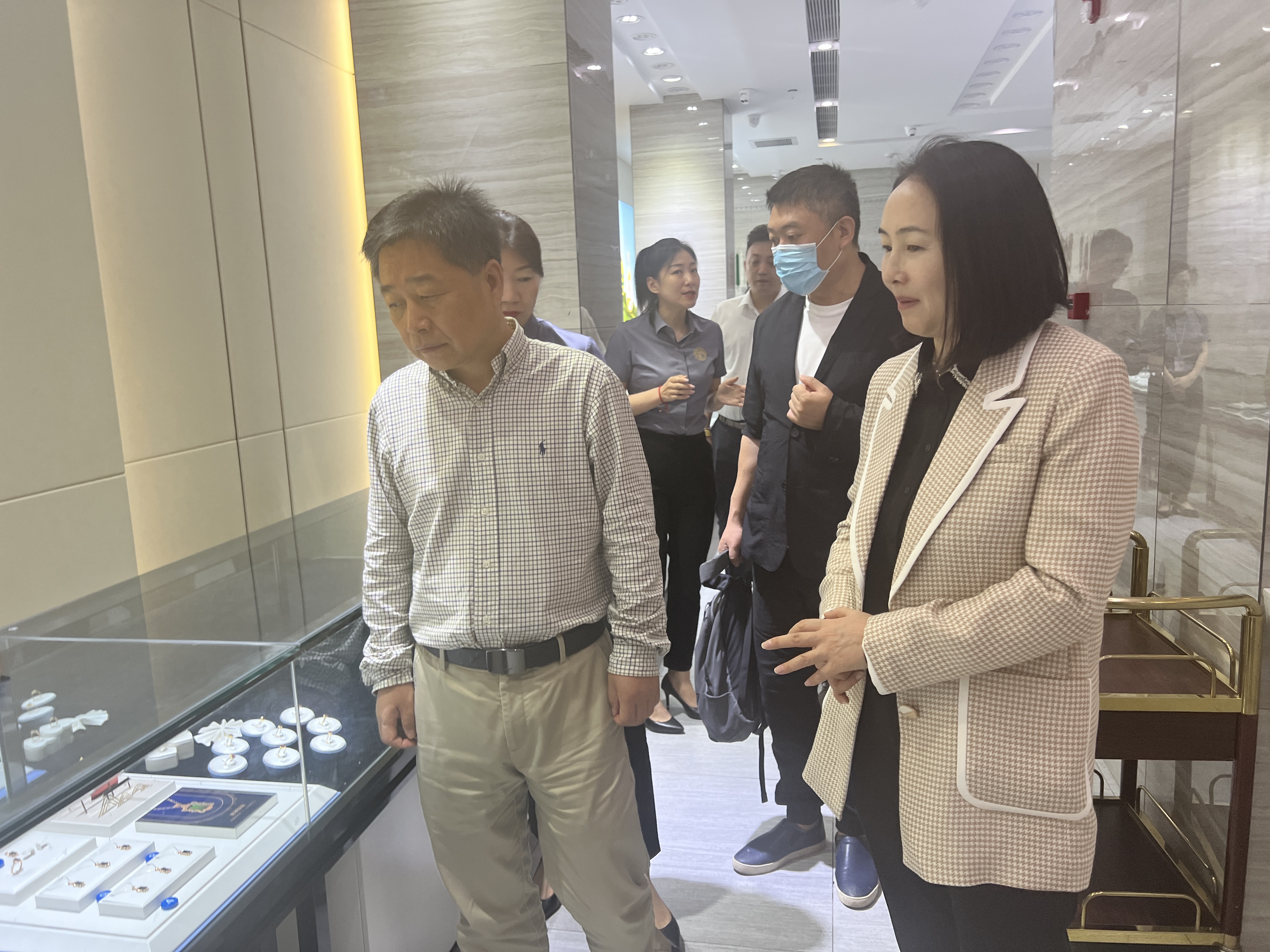 会后,一行人由柳红艳经理带领参观了企业的文化长廊、珠宝制作区和办公区。